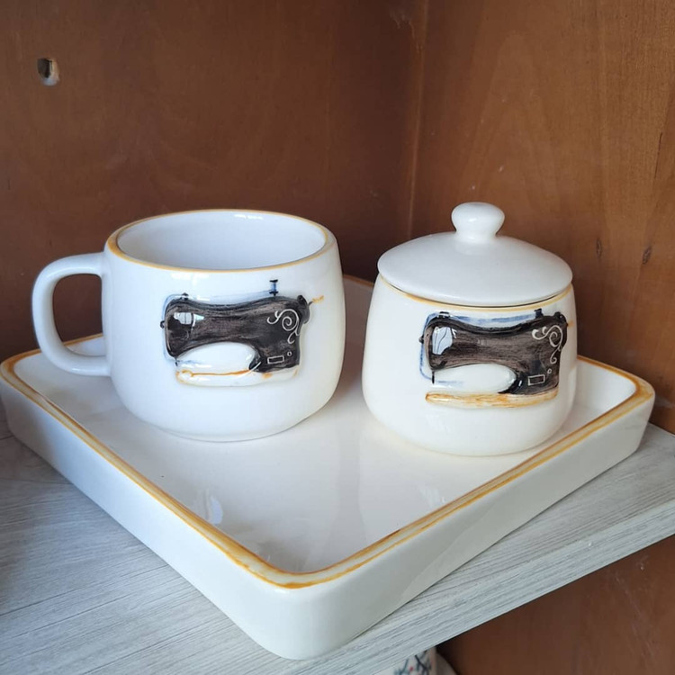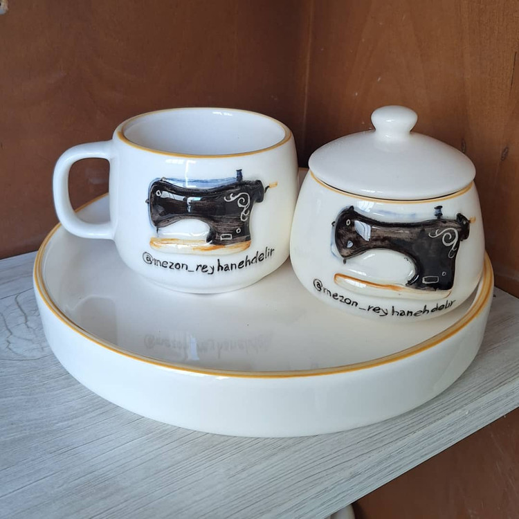 ست ماگ_تخت سرو بلوم طرح چرخ خیاطی دست ساز