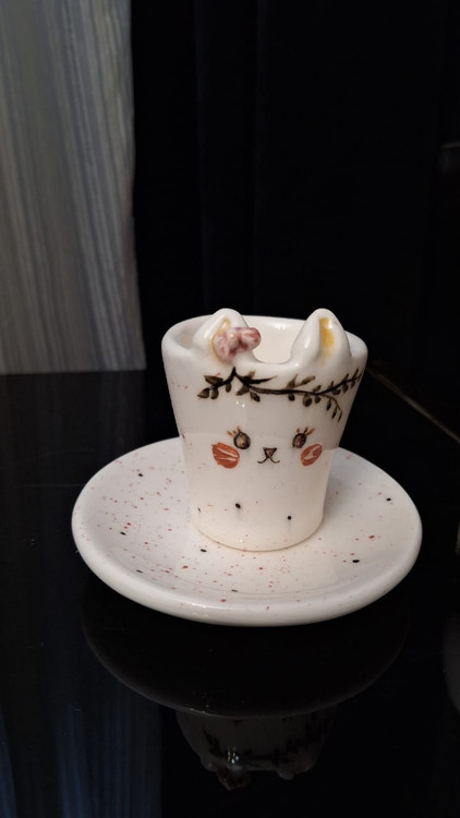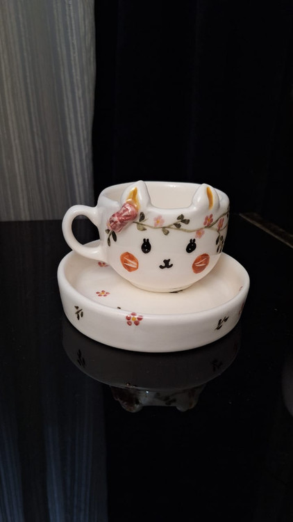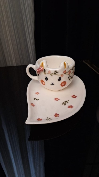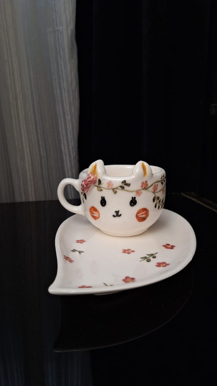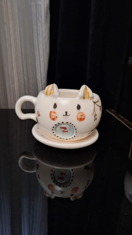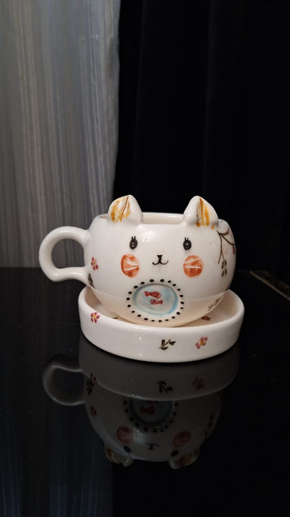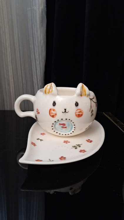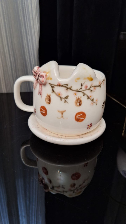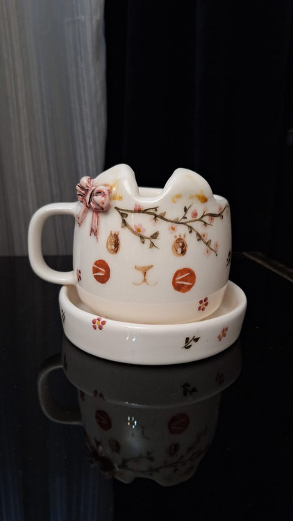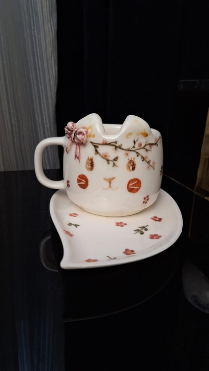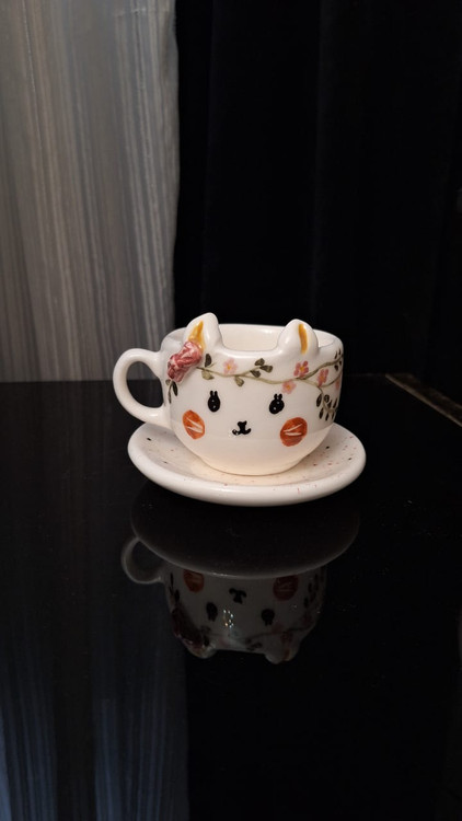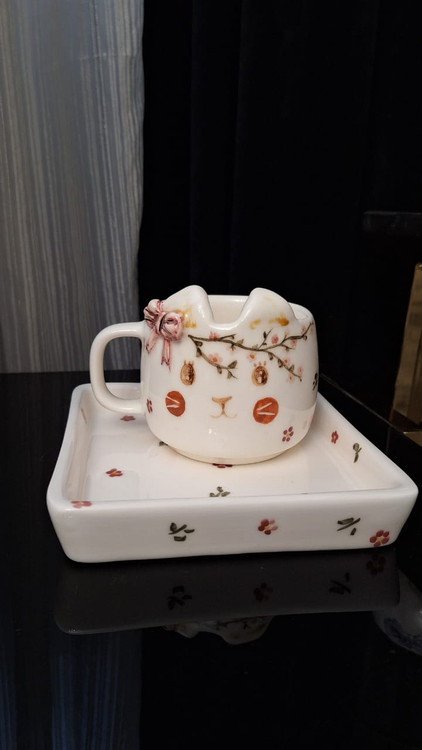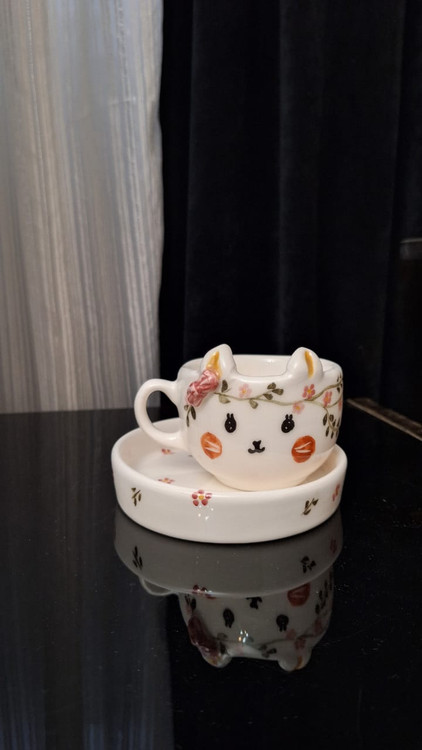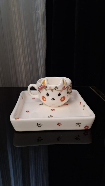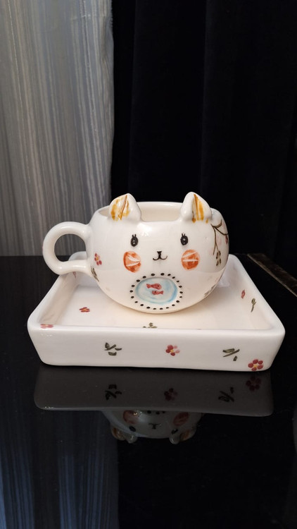 ماگ _تخت سرو بلوم طرح گربه دست ساز