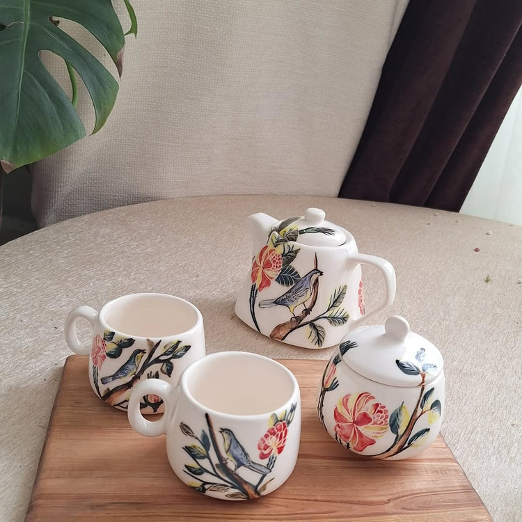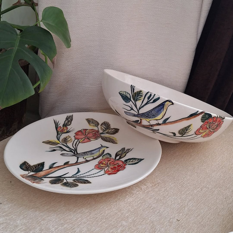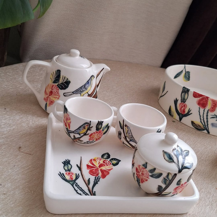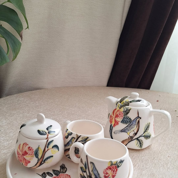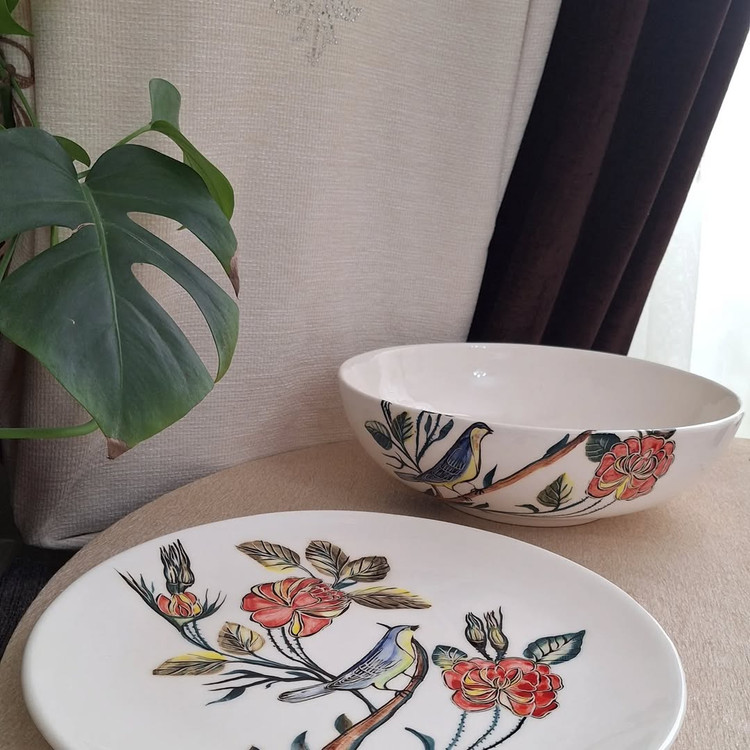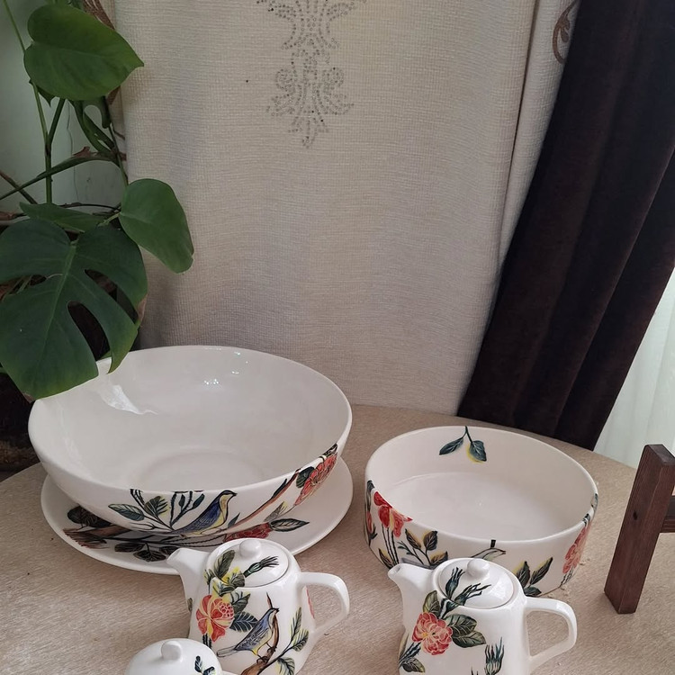 ست پذیرایی بلوم طرح گل و مرغ دست ساز