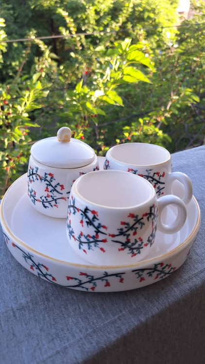 ست فنجان_تخت سرو بلوم طرح انار دست ساز سرامیکی